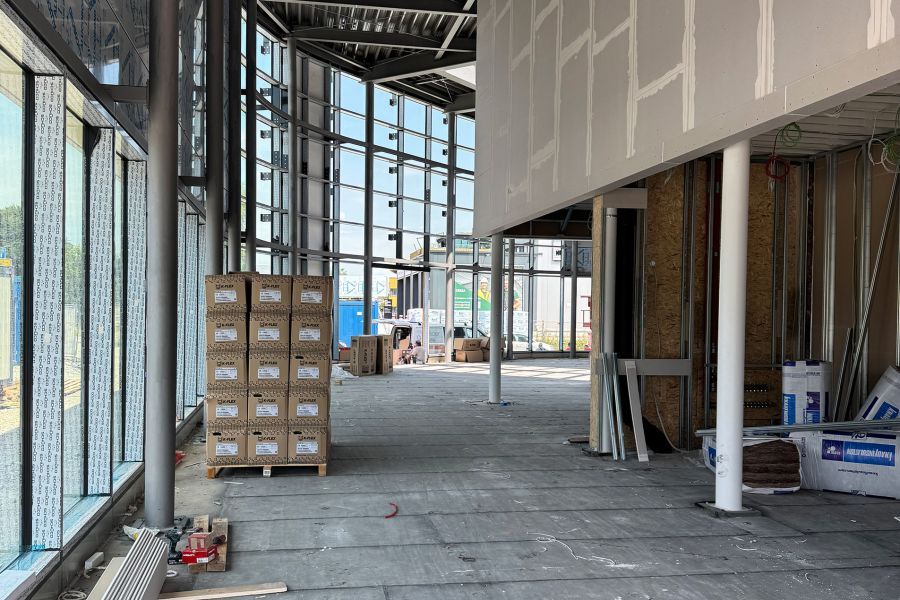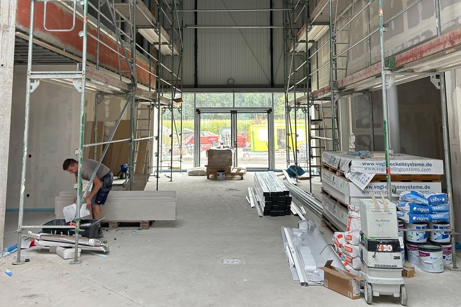 Auch im Innenbereich nehmen die verschiedenen Bereiche des Porsche Zentrums zunehmend Gestalt an: ein lichtdurchfluteter Showroom, ein hochmoderner Servicebereich, ein einladender Empfangsbereich sowie effiziente Büroflächen für Verkauf und Administration entstehen gerade. Alles mit dem Ziel, unseren Kunden ein exklusives Porsche Erlebnis auf höchstem Niveau zu bieten.
