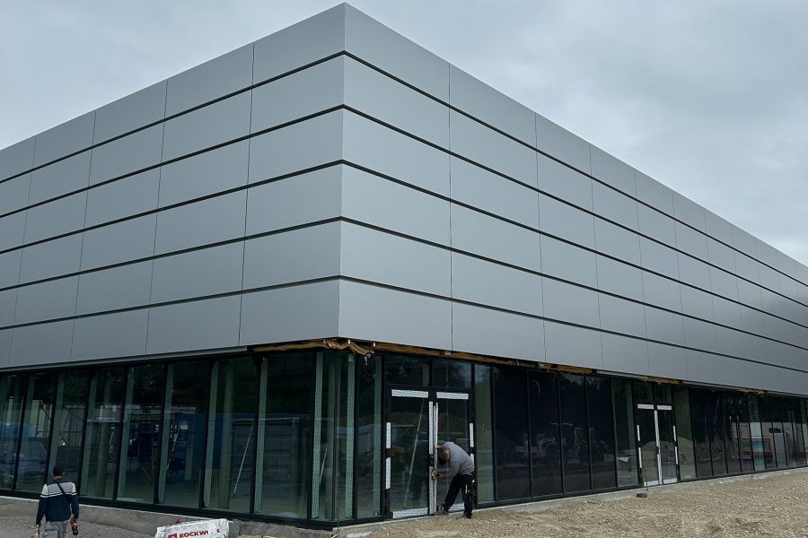 Baukräne, Lastkraftwagen und unzählige Baumaschinen sind seit April 2024 im Dauereinsatz und haben, geführt von einem erstklassigen Team, bereits mehr als tausende Kubikmeter Beton sowie hunderte Tonnen Stahl verbaut. Besonders im Fokus stehen derzeit die Fassadenarbeiten. Die spektakuläre Lamellenfassade verleiht dem Gebäude langsam aber sicher seine charakteristische Silhouette und fängt die typische Porsche-Ästhetik mit klarer Linienführung und spannender Tiefenwirkung eindrucksvoll ein.